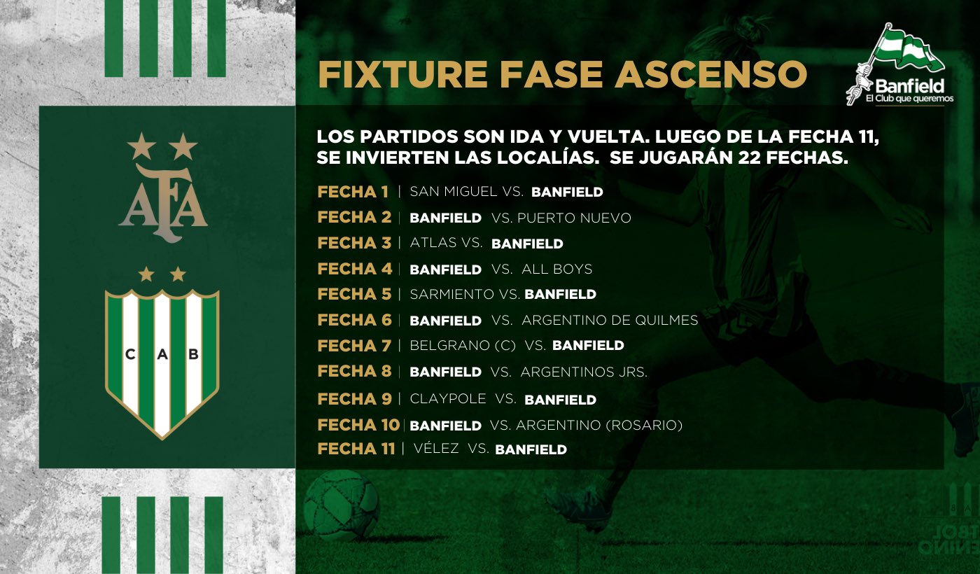 Banfield debuta frente a San Miguel en el fin de semana del 21 de mayo tras finalizar la actual zona clasificatoria. La última fecha se disputa el domingo 15 de mayo.